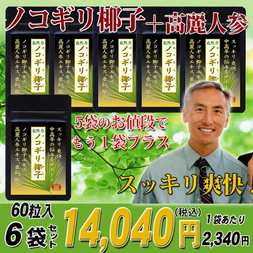 ノコギリヤシ 5袋で1袋プレゼント(約6ヶ月分) 送料無料 サプリ 1袋60粒入6袋 ノコギリヤシ 320mg配合 高麗人参 亜鉛 国産 トイレ、薄毛のお悩みにも 大日ヘルシーフーズ直販 製造元だから高配合 あす楽 お得用 サプリ