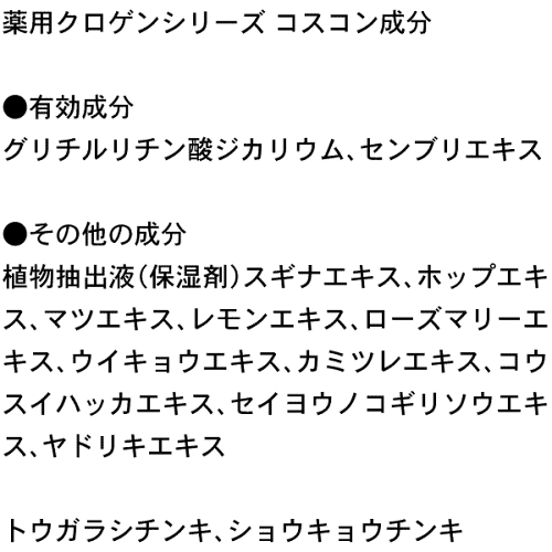 薬用クロゲンシリーズコスコンは、頭皮下の皮膚生理を考え、血行を促進し、毛根に栄養を与えると同時に、各種植物抽出液を配合し、優れた保湿効果により頭皮を柔軟にし、抜け毛・薄毛の原因になる頭皮の緊張(つっぱり)をやわらげ、頭皮を健やかに整えて、抜け毛の原因になるフケ・カユミも防ぎ、脱毛の予防・発毛促進、育毛の効果を高めた薬用発毛促進剤です。